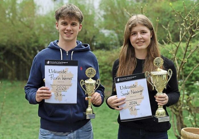 Pokal samt Urkunde: Sarah Neininger und Florin Werner freuen sich über ihre Plazierungen